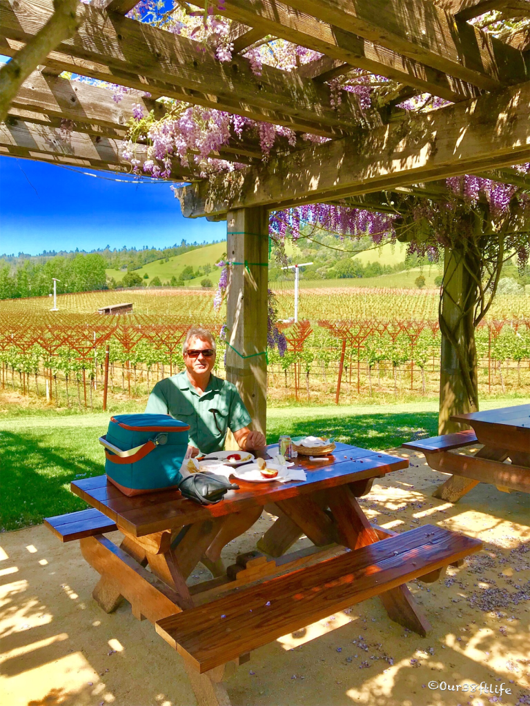 We almost skipped the wine country in the Sonoma area because we have been there so many times. I know… sacrilegious right??? I came to my senses after further reflection and a glass of wine of course. Hwy 101 would take us right through the Russian River, Anderson Valley and Dry Creek area so we finally decided that a four day stop over would be just perfect. I also hemmed and hawed because the RV Parks in this area are not great nor plentiful. After a lot of research, I reluctantly booked a site at the Cloverdale KOA. The reviews were okay but the road getting there was going to be interesting in our big ass coach. Four miles of narrow but well paved roads that were windy and steep according to what I had read. After the 16% grade at Laguna Seca, I figured it would be a piece of cake. Easy for me to say since I wasn’t going to be driving!!