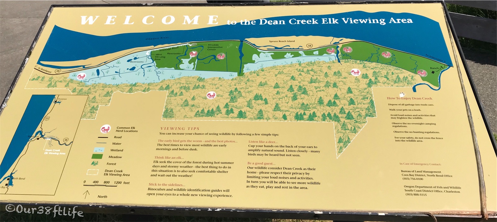 North of Coos Bay near Reedsport is the Dean Creek Elk Viewing Area. ELK…yes more ELK. This girl can’t see enough elk!!! The Bureau of Land Management maintains a series of pastures along Oregon Highway 38 that are a year-round residence for a herd of 60-100 Roosevelt elk. Elk are visible almost every day of the year, WOO-HOO!!!! The main viewing area, with an interpretive kiosk and restrooms, offers visitors the chance to learn about the elk and the site heritage. Several pull-outs along the highway offer excellent photo opportunities. Dean Creek is also a popular bird watching area, serving as a stop along the coastal migration route.