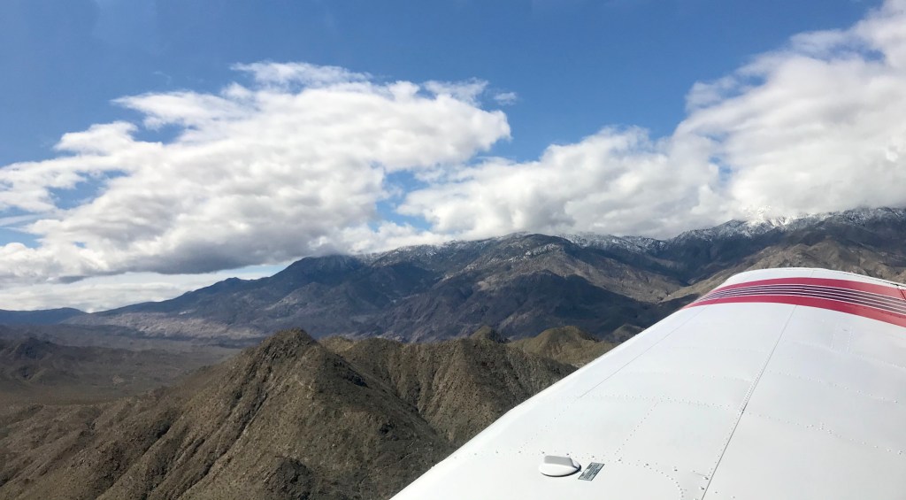 - Spent the morning flying over the Coachella Valley, the Salton Sea and the San Andreas Fault with the our good friends John and Kristen Damazio in their plane Valentina. We had planned this outing long before the SIP order came down and we were actually playing cards together when we heard the Governor’s order. Debated not going but honestly we came in contact with no one, other than each other and we have already spent copious amounts of time together.