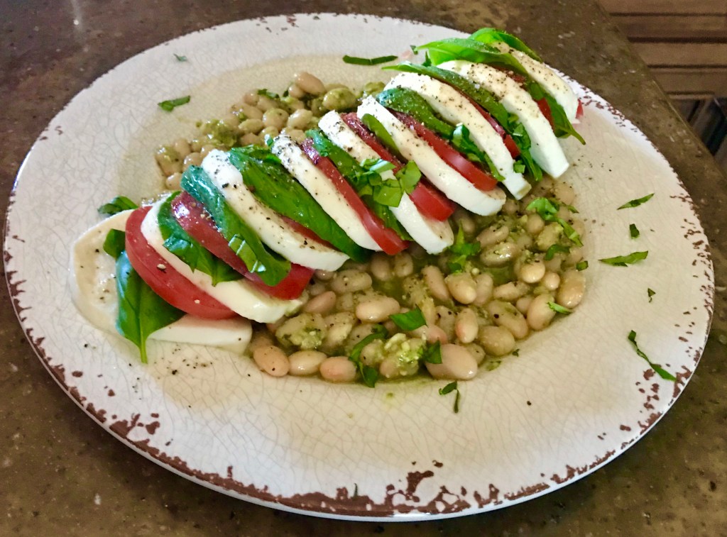 - Fixed a caprese and white bean salad to take to the first meeting of the Quarantini Club.