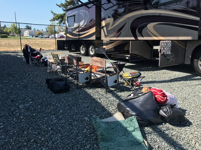 We are the second owners of new Road House (kept the same name) and found her sitting on a consignment lot in Poulsbo Washington. Her previously owner, who purchased her new had been diagnosed with Alzheimer’s and she had a big scrape down the passenger side. Could be why he wasn’t driving her anymore – very sad. The coach only had 14K miles and most of the appliances still had the original stickers on them. Honestly, the entire deal was a complete pain in the arse and took over 4 months to finalize (not fans of Poulsbo RV). The upside was that we had time, negotiated the price down and got the unsightly scape fixed. We did have a complete independent engine, chassis, interior and exterior inspections done. We also bought an extended warranty that has comprehensive coverage on all of the above so we felt very confident all was well when we finally rolled out of the dealership from hell.