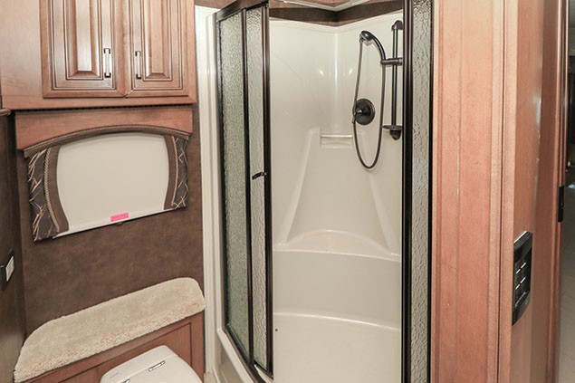 We love the on demand hot water system, the porcelain tile floors with a heating option, the fireplace, the outdoor TV and stereo system and all the newer technology . Honestly, we love just about everything about the coach.