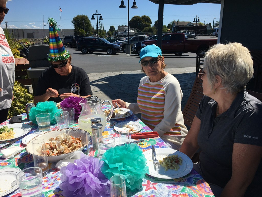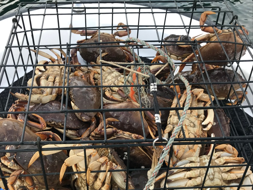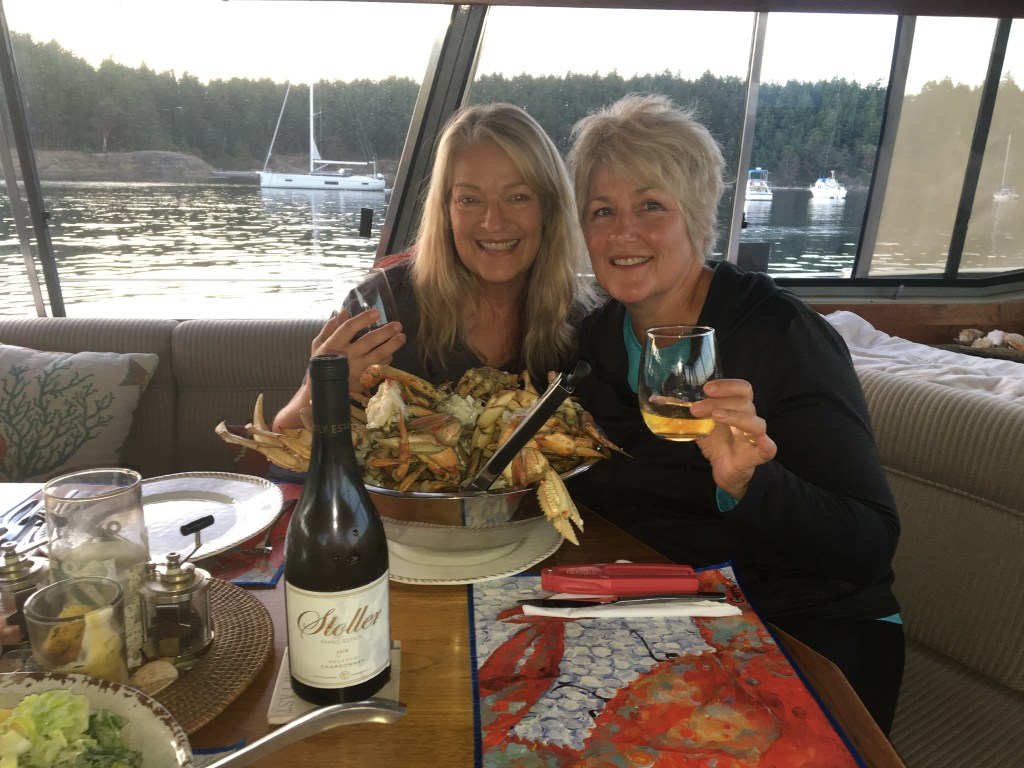 We also did a whole LOT of crabbing not far from our marina … our 13 ft Boston Whaler is a perfect crabbing machine. I think we tagged more than 160 crabs… NO, we didn’t eat all of them…YES, we shared them with friends and YES, I have frozen crab in the freezer. Many a crab feed ensued this summer… and there will be crab cakes this winter!!!
