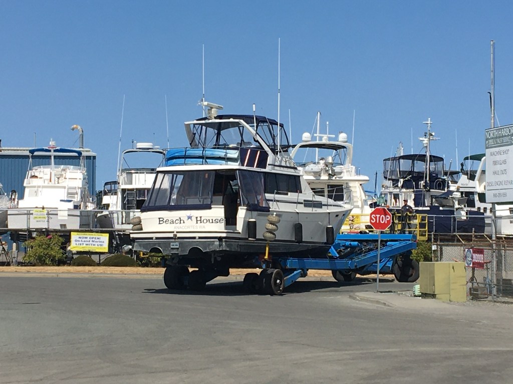 We also had our first boat tow ever… our early season shake down cruise to Stuart Island turned into a break down cruise – Ugh, definitely not a highlight!!! We have two engines on the Beach House and could have motored back on one engine but the broken shaft was a huge liability and had it become disengaged from the boat, bad things could have happened. I gotta say being towed is uber boring as you can’t go very fast and a bit embarrassing but the Tow US folks from Friday Harbor did a great job getting us safely back to Anacortes. There were a few tense moments with our insurance company as they were not excited about a 35 mile water tow. Of course we broke down at the furthest most outer island. Luckily, it all worked out and they realized after some explaining that there was no where closer to tow us that could accommodate our size boat for repairs. We ended up moving back onto the Road House for two weeks while the boat was out of the water for repairs. Alls well that ends well and a few boat units were spent to get us back in the water!