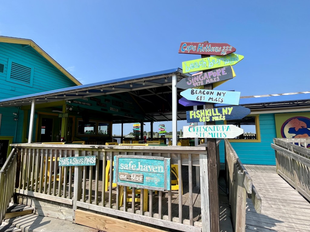 Despite being a bit rustic, funky little Belhaven Marina scored a 5 star review from me. The staff was excellent and were there on the dock to get you tied up. They had the fixed docks set up with large round fender to protect the sides of the boat. They also bring you a bag of information from the chamber of commerce about the local area. The harbor master Greg made an excellent recommendation about the fish hide as well. The setting was charming and all of a block into the small town. There is also a cute ships store, free laundry and showers, lawn games, a book trade library, a BBQ grill with propane and multiple gazebos and sitting area around the small property. Need to make a grocery store run… just borrow a golf cart and off you go! I thought it was sweet that shampoo, towels and hair dryers are all included at the showers and laundry soap and dryer sheets were free in the laundry room as well.