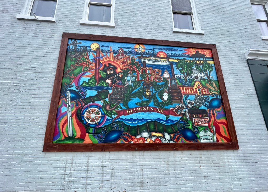 Belhaven is tiny and it is amazing that there is an excellent Farm to Table restaurant in this town of 1,400. We really enjoyed meeting the owner of Spoon River had a great dinner there on Monday. Honestly, it was one of the main reasons I wanted to stop here and we timed it to arrive on Monday when they were open. I had made a reservation and was glad we did as the place was packed. The eclectic interior is filled with art that is all done by the owner.