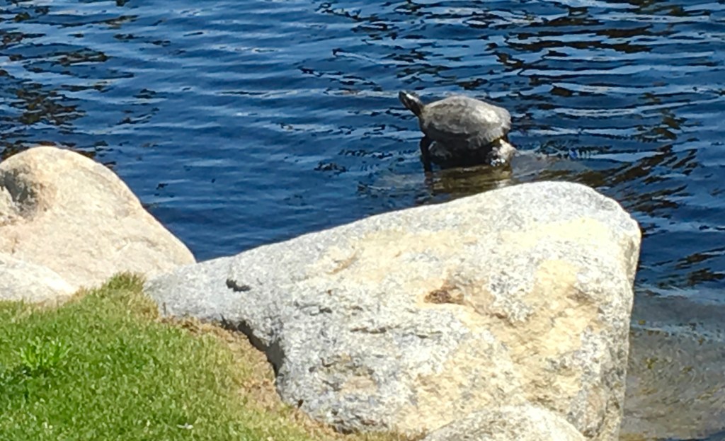 Turtles, Mallards with ducklings, Coots, Pelicans, Egrets, Roadrunners and a host of other birds visit or live around the lake. I also hung a bird feeder behind the coach by the bedroom window – for the cat to watch of course!